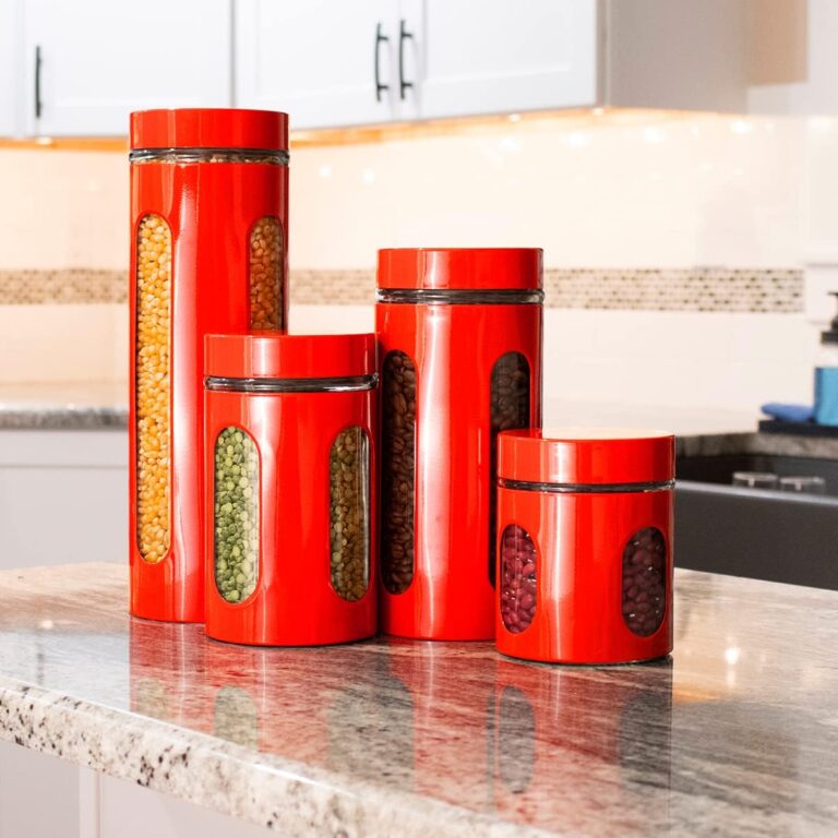 Kitchen Details Countertop Single Tear Paper Towel Holder, Free Standing, Weighted Bottom, Holds Large Rolls, Dispenser Bar Prevents Unraveling, Red